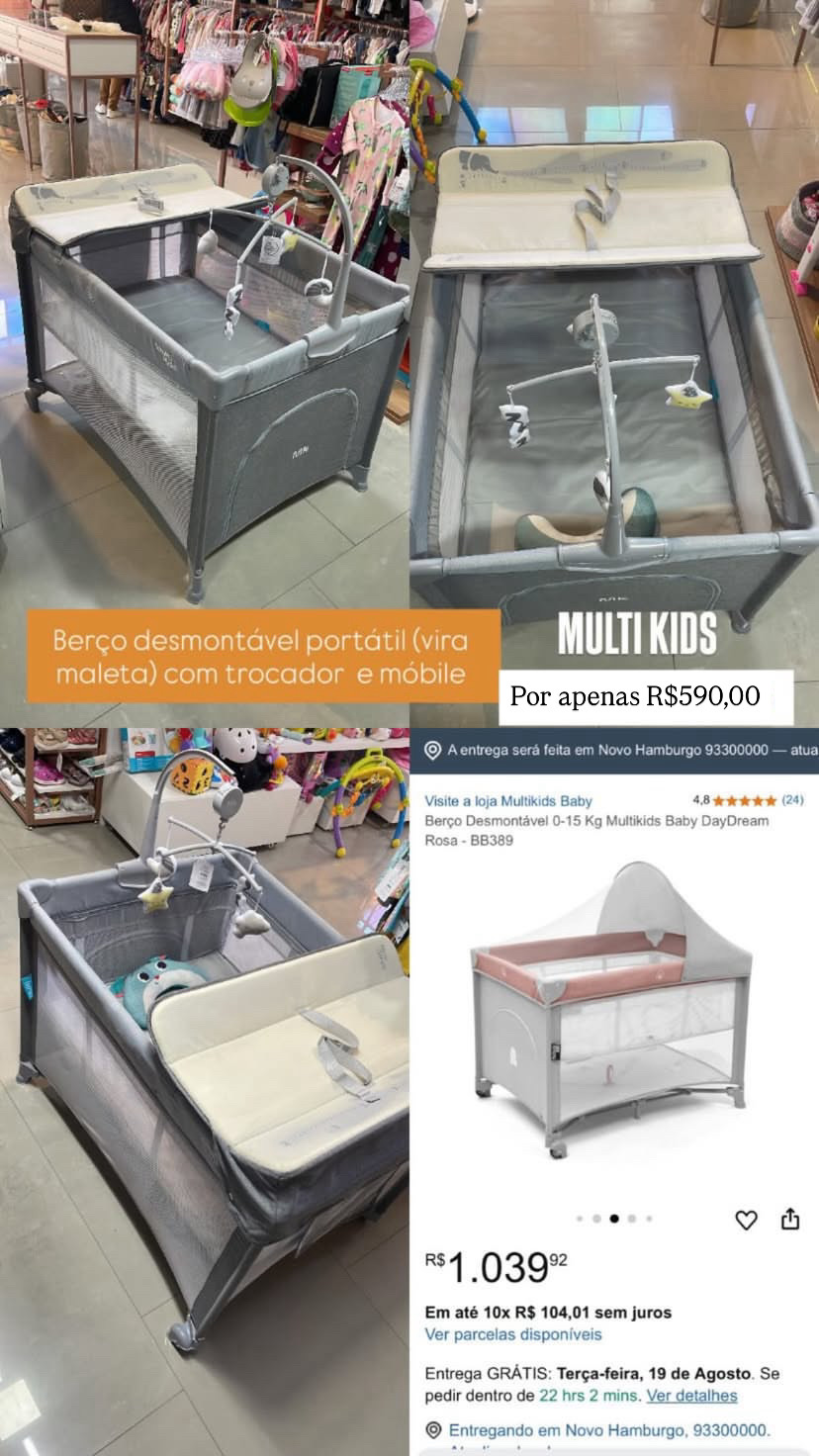 Berço Desmontável Portátil Multikids (Vira maleta) com trocador e Móbile