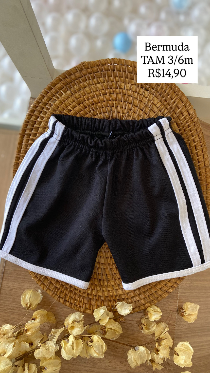 Bermuda Preta com Listras Tamanho 3/6 meses
