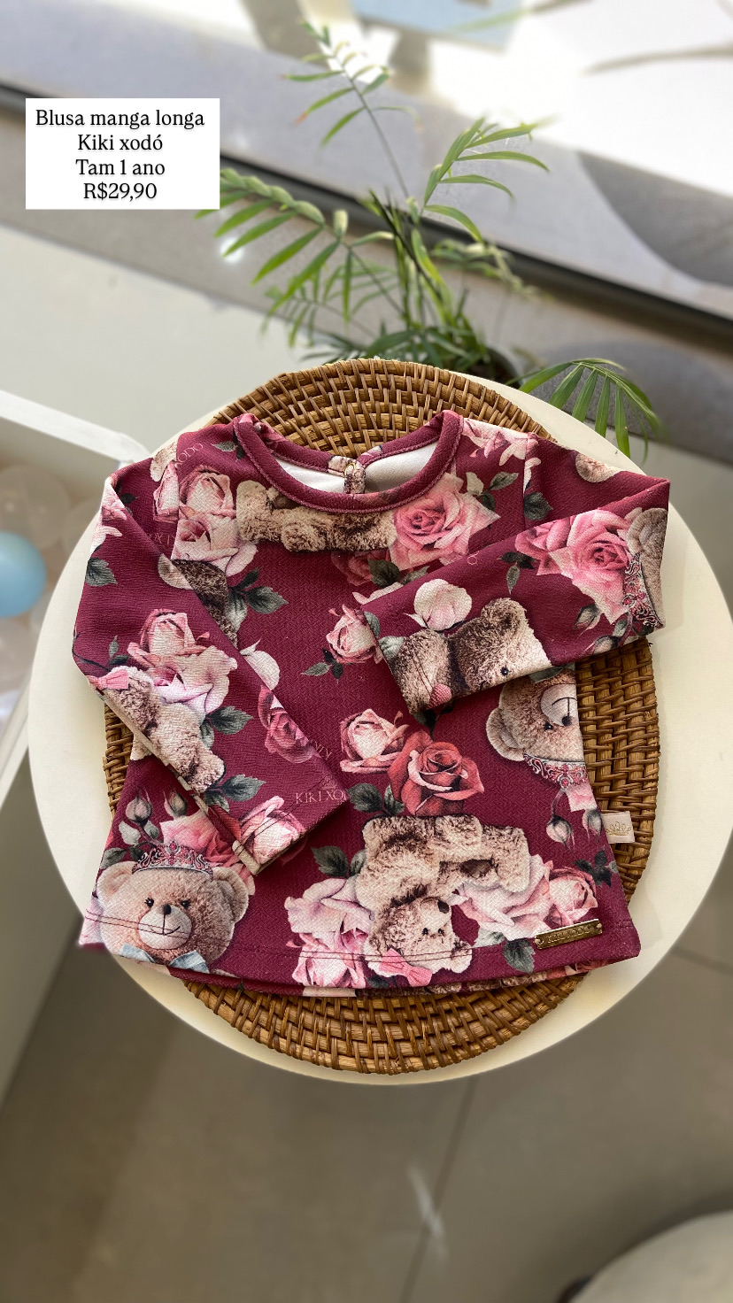 Blusa Manga Longa Flores Kiki Xodó Tamanho 1