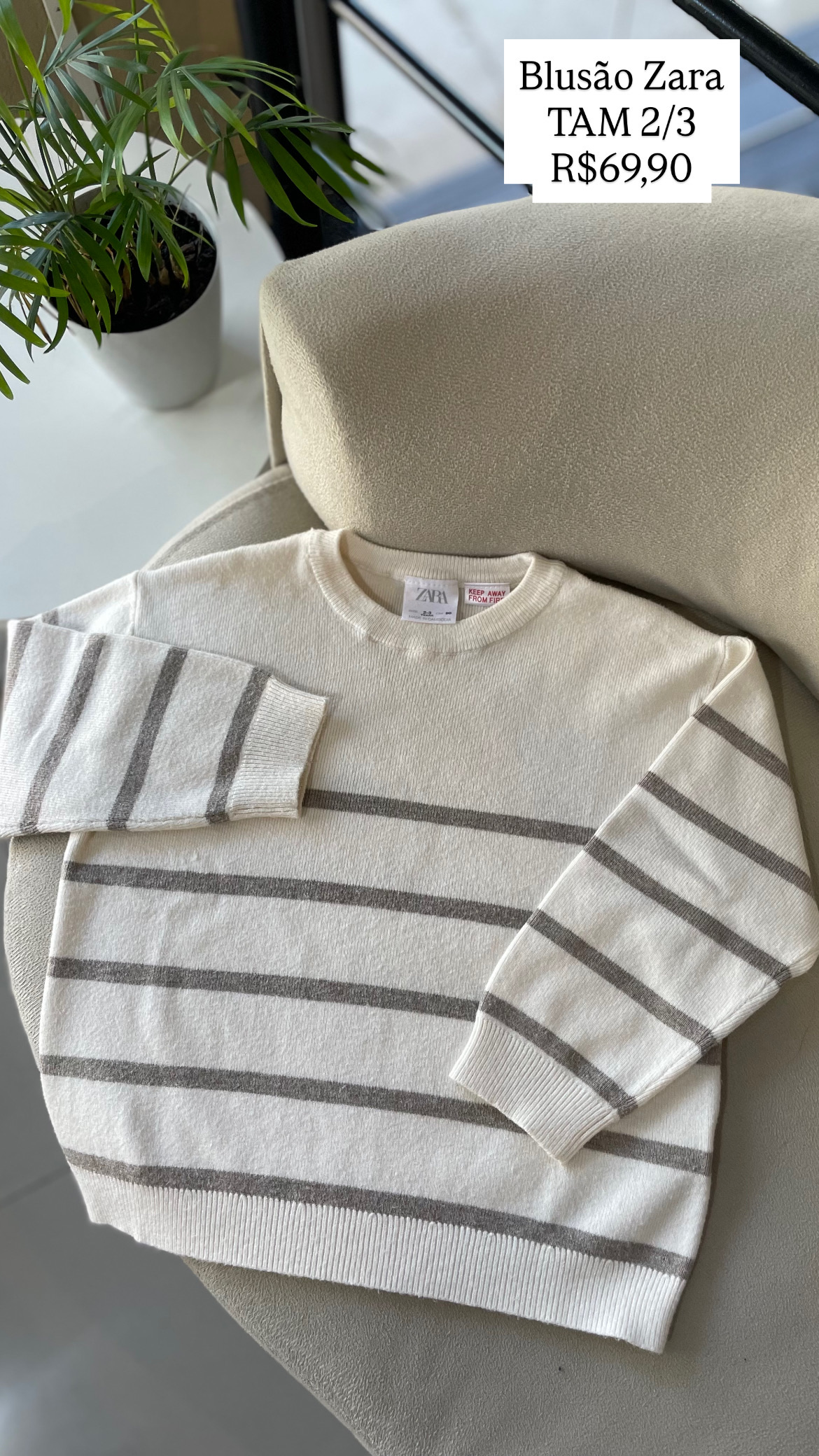 Blusão Zara Listras Tamanho 2/3