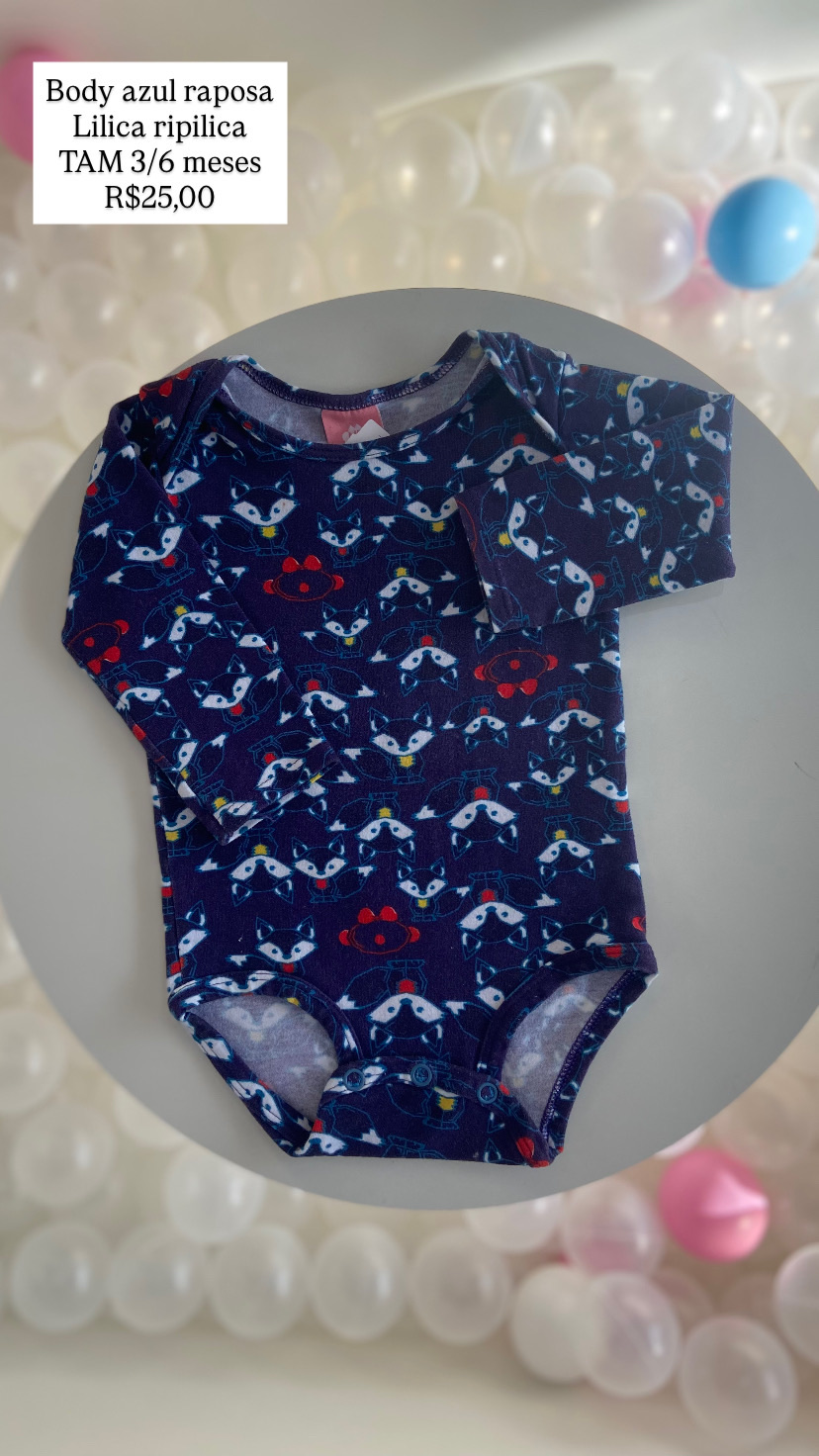 Body Azul Raposa Lilica Repilica Tamanho 3/6 meses
