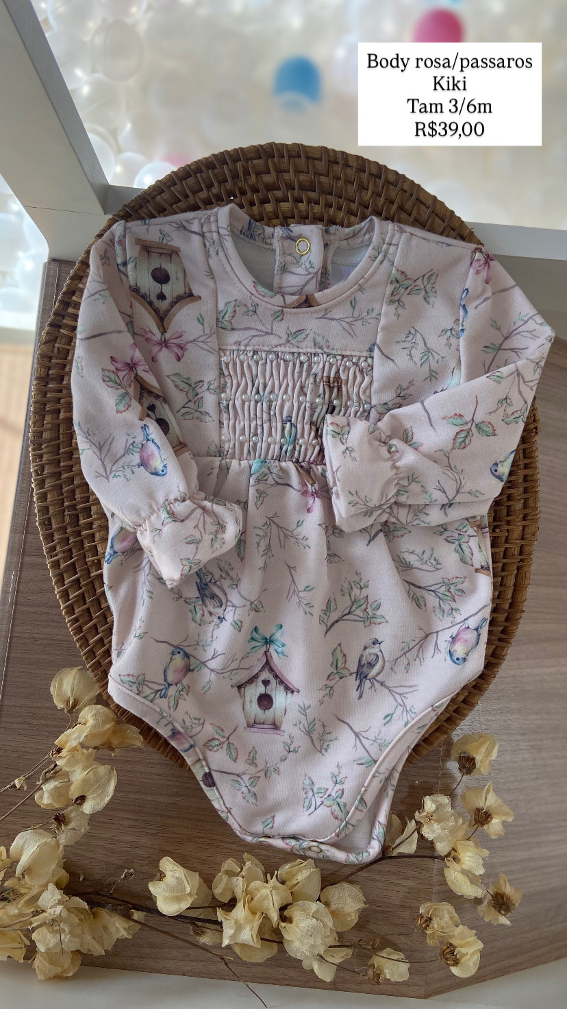 Body Pássaros Kiki Rosa Tamanho 3/6 meses