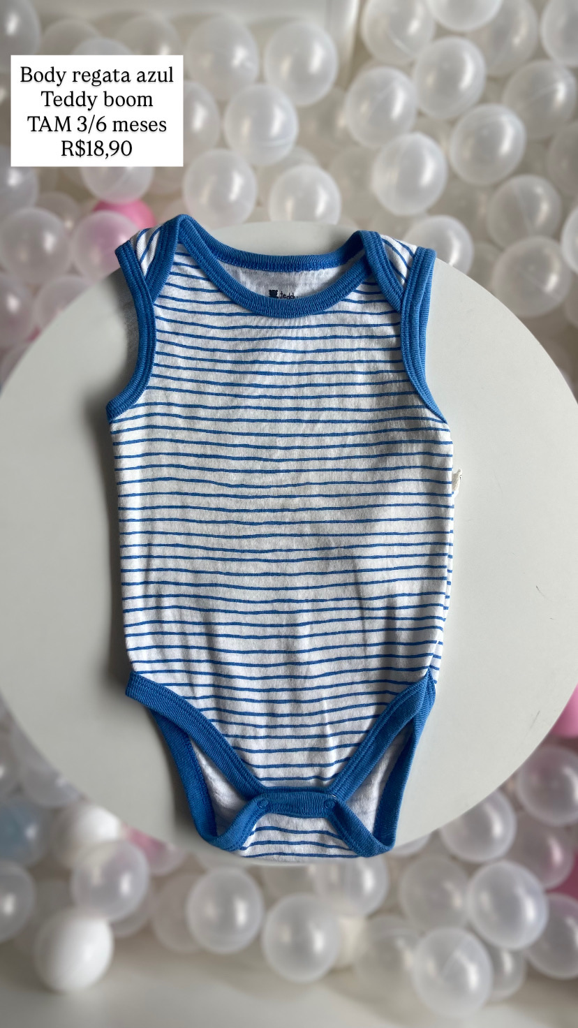 Body Regata Azul Teddy Boom Tamanho 3/6 meses