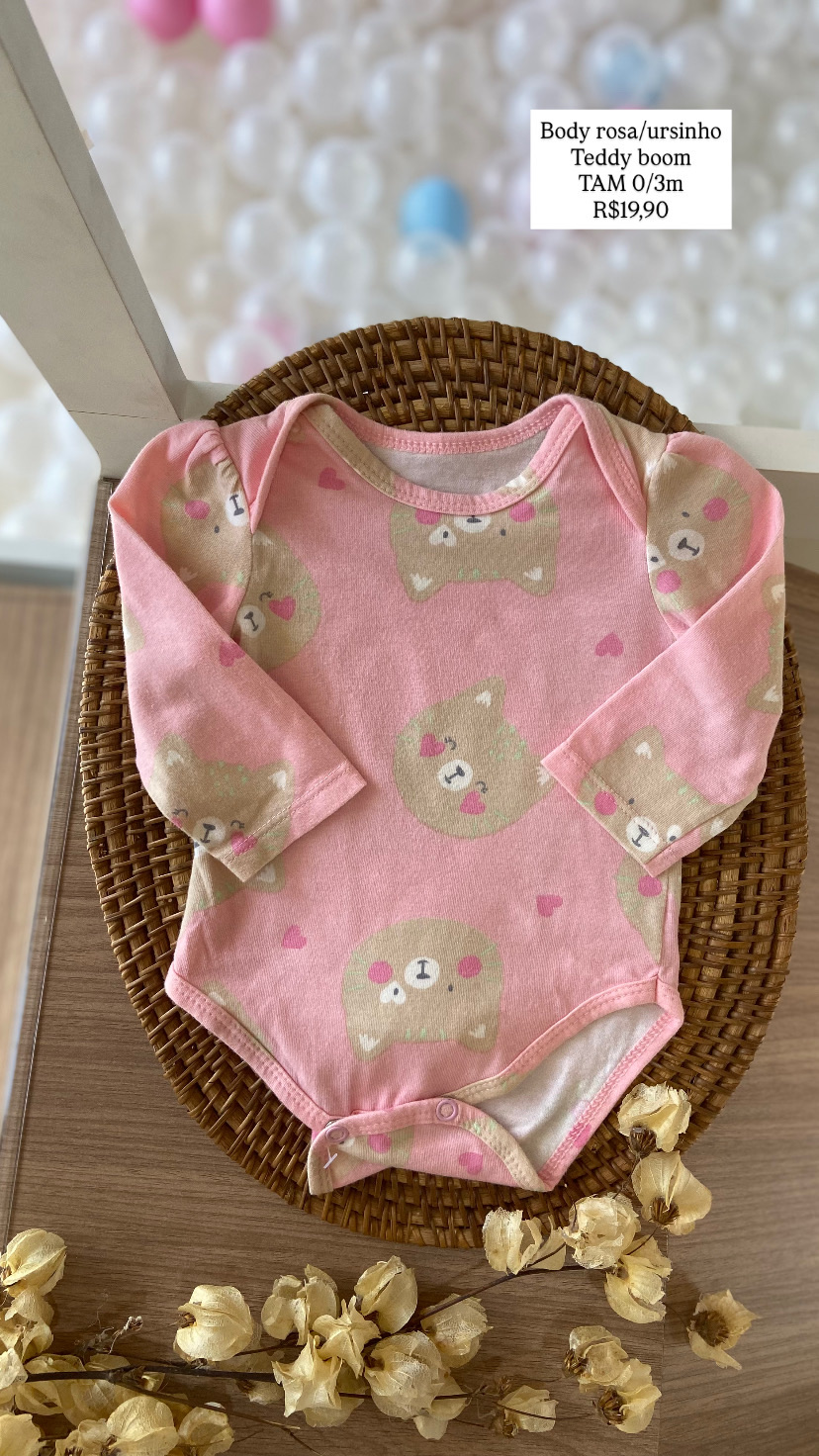 Body Ursinho Teddy Boom rosa Tamanho 0/3 meses