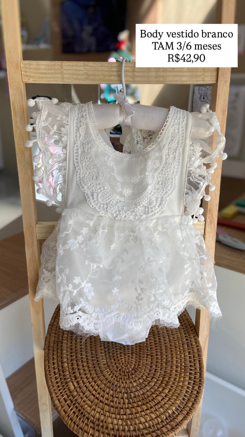 Body Vestido Branco Renda Tamanho 3/6 meses