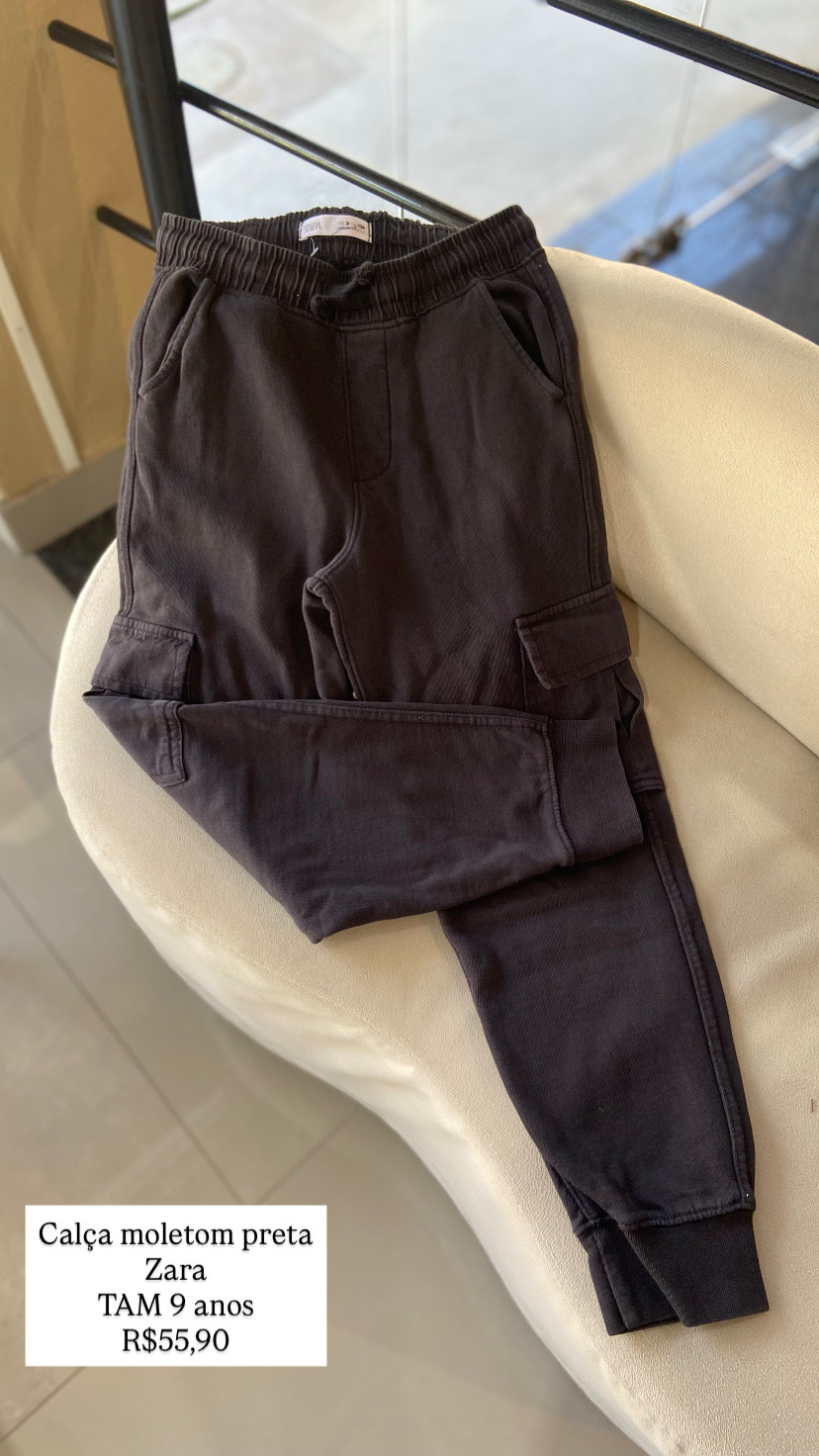 Calça Moletom Preta Zara Com Bolso Lateral Tamanho 9