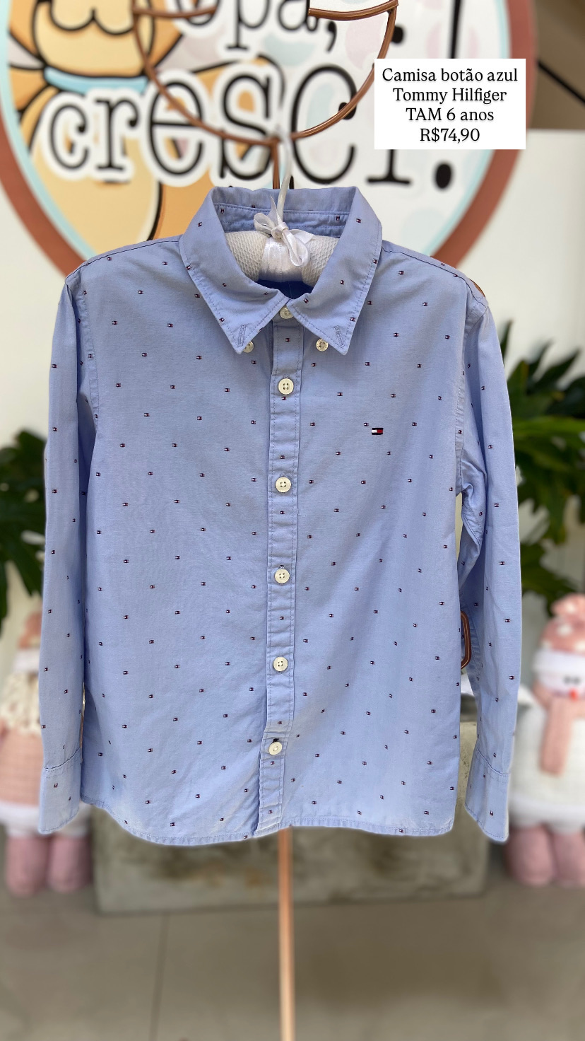 Camisa Botão Azul Tommy Hilfiger Tamanho 6