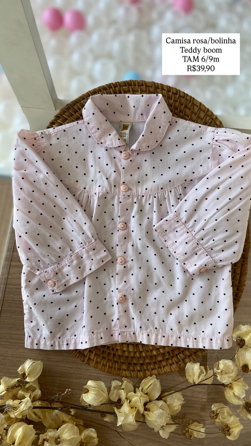 Camisa Teddy Boom rosa/bolinha Tamanho 6/9 meses