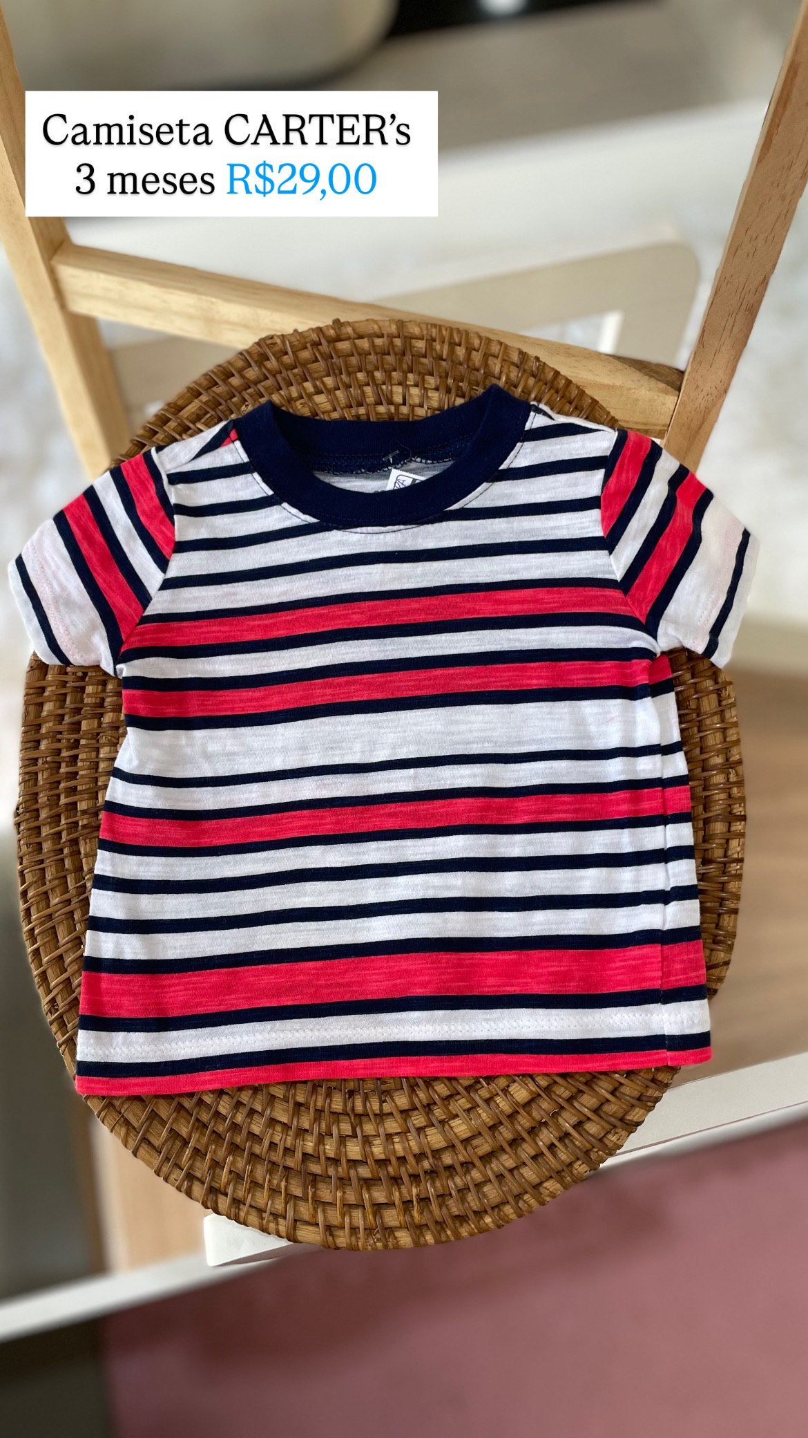 Camiseta Carter’s Listrada Tamanho 3 meses