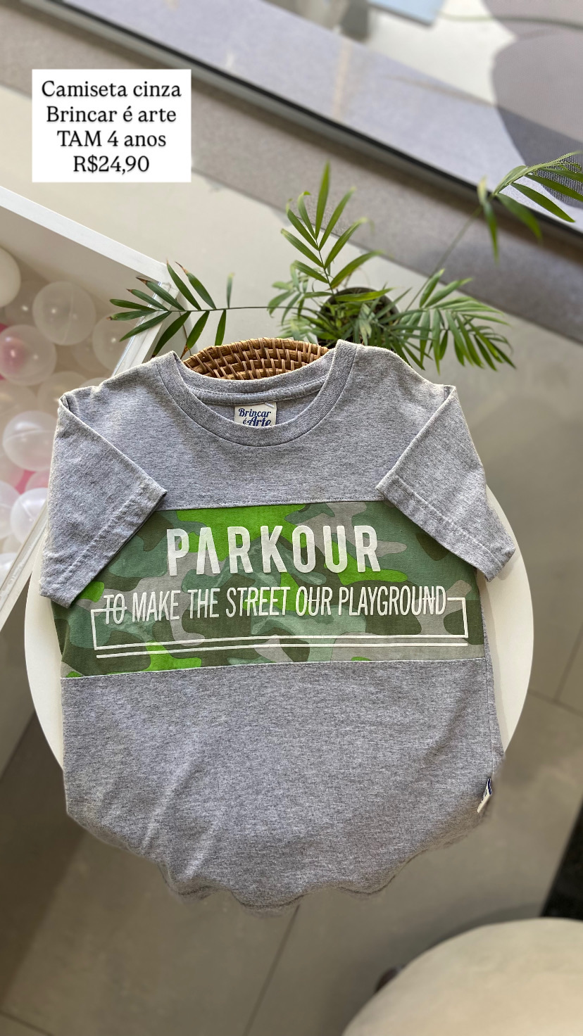 Camiseta Cinza Brincar é Arte Tamanho 4