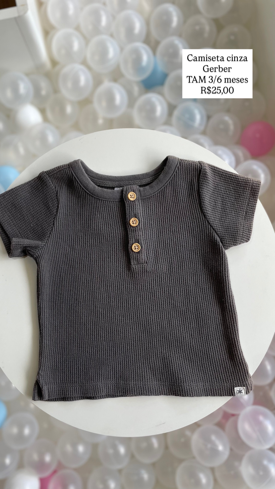 Camiseta Cinza Gerber Tamanho 3/6 meses