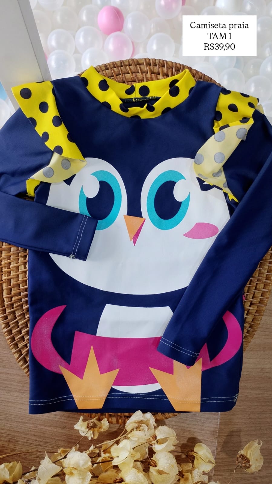 Camiseta Pinguim Praia Tamanho 1