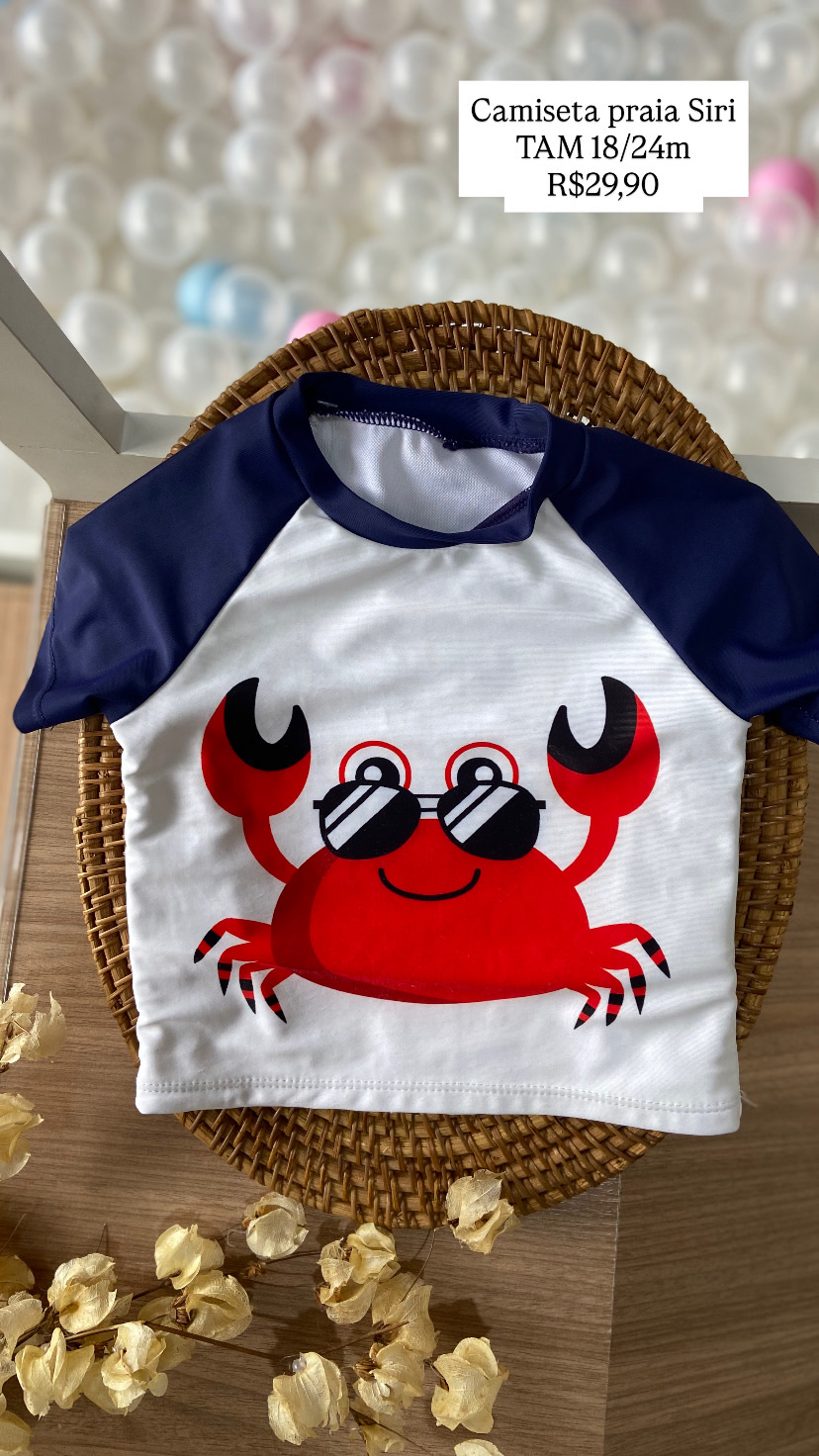 Camiseta Praia Siri Tamanho 18/24 meses
