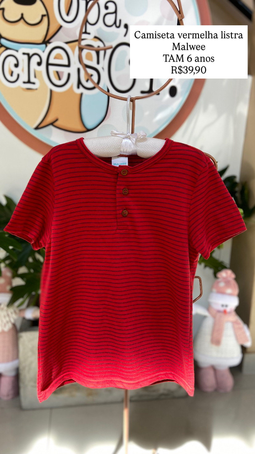 Camiseta Vermelha Listras Malwee Tamanho 6
