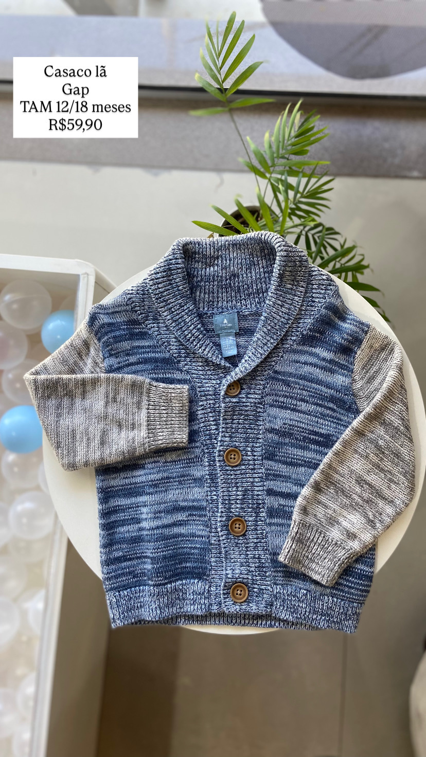 Casaco Lã GAP Azul e Cinza Tamanho 12/18 meses