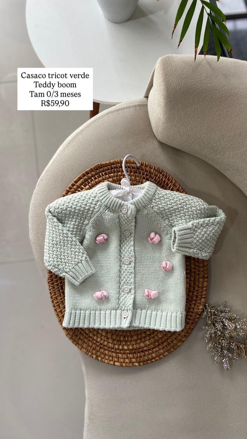 Casaco Tricot Verde Teddy Boom Tamanho 0/3 meses