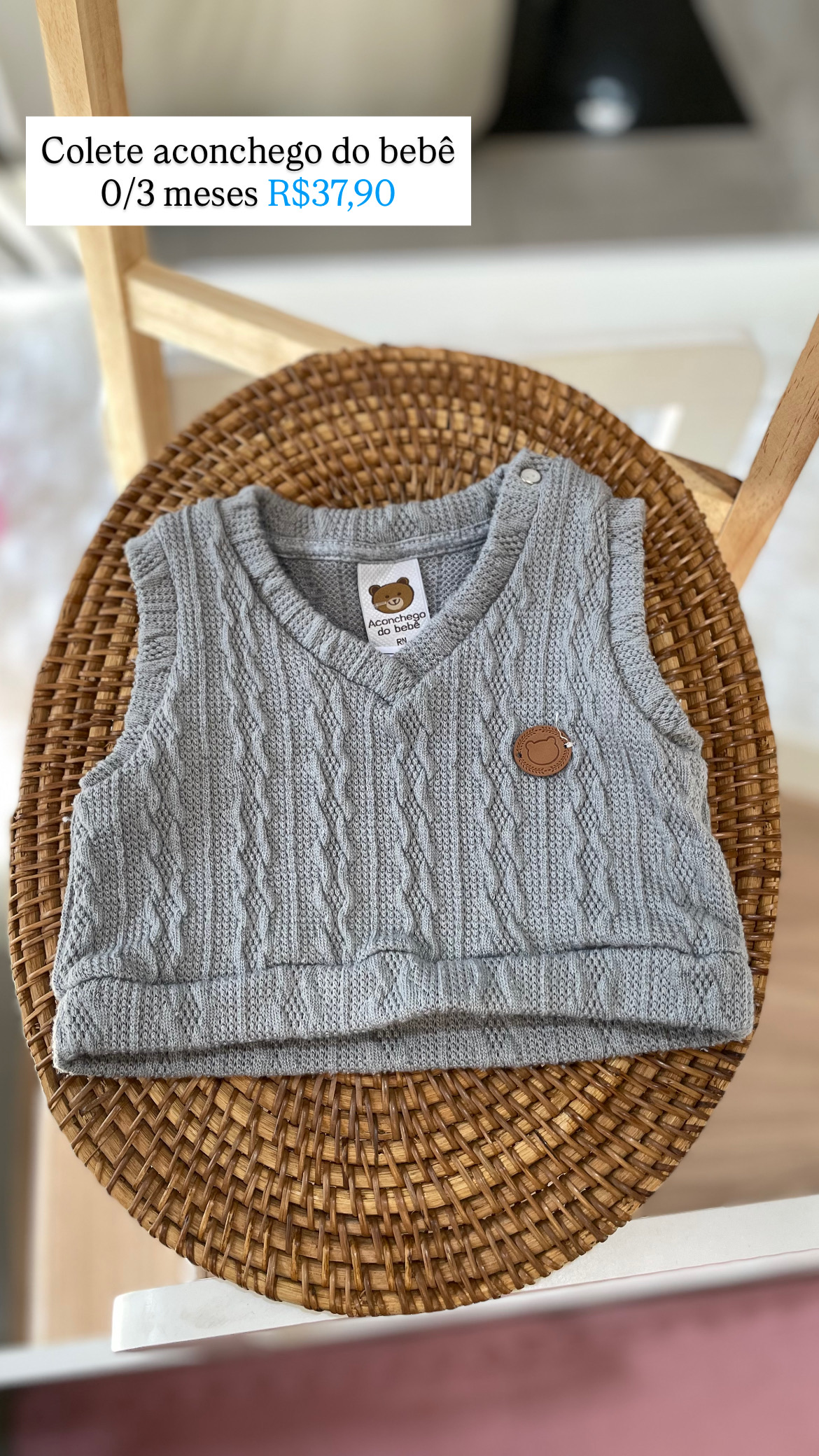 Colete Aconchego do Bebê Cinza Tamanho 0/3 meses