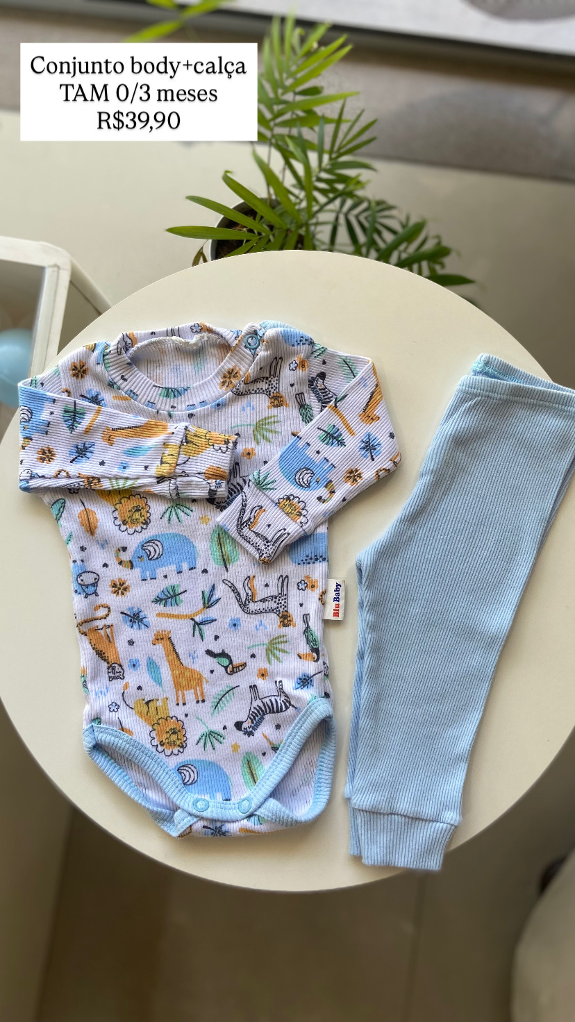 Conjunto Body + Calça Bichinhos Tamanho 0/3 meses