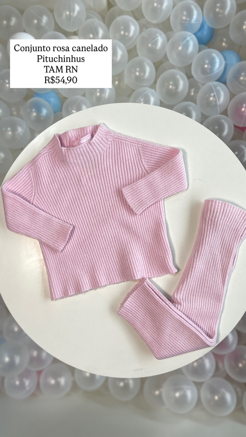 Conjunto Rosa Canelado Pituchinhus Tamanho RN