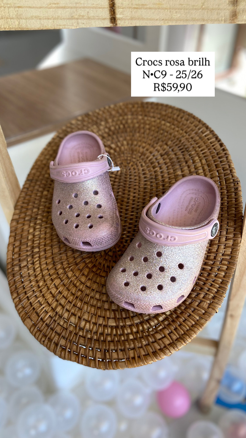 Crocs Rosa Brilho C9 Tamanho 25/26
