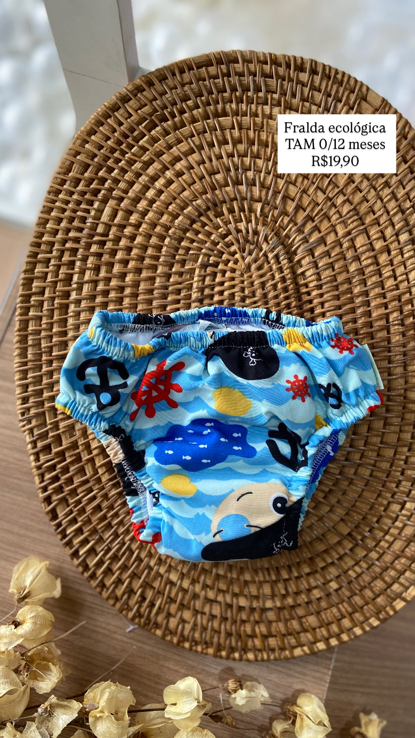 Fralda Ecológica Piratas Tamanho 0/12 meses