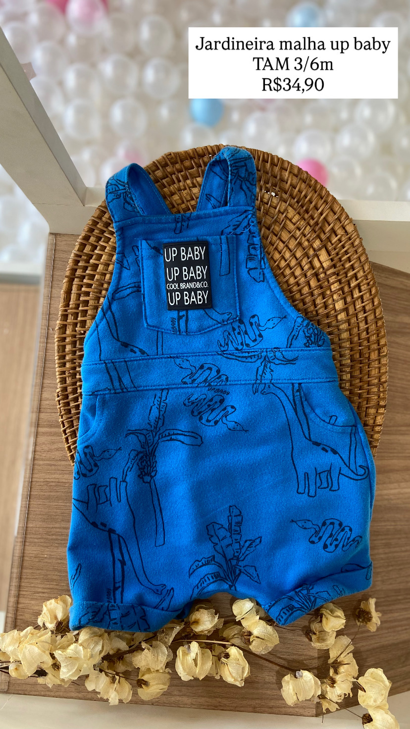 Jardineira Malha Up Baby Dinossauros Tamanho 3/6 meses