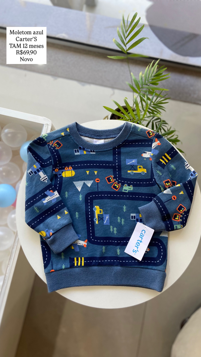 Moletom Azul Carter’s Tamanho 12 meses Novo