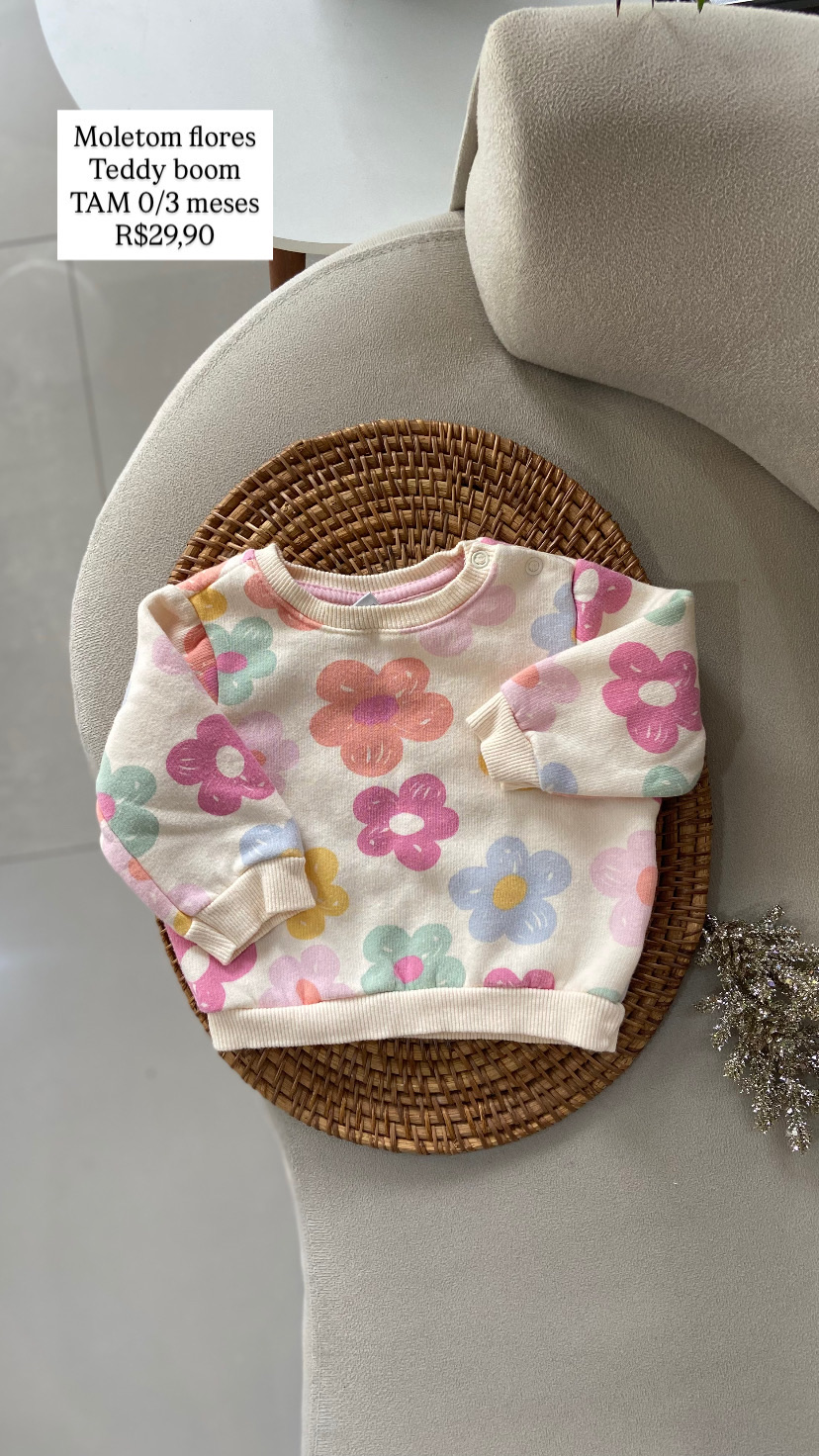 Moletom Teddy Boom Flores Tamanho 0/3 meses