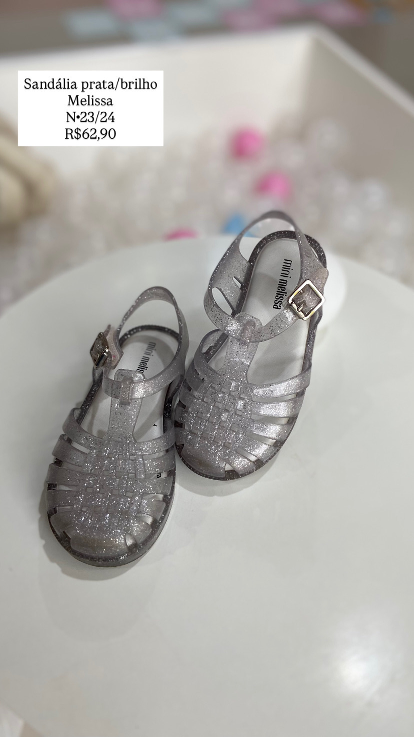 Sandália Melissa Prata Brilho Tamanho 23/24