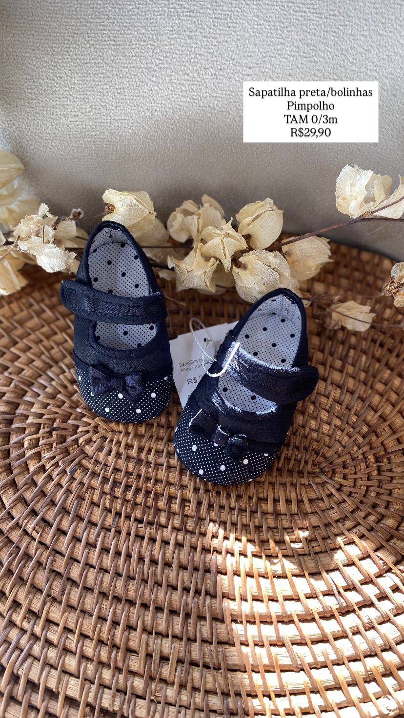 Sapatilha Pimpolho preta/bolinhas Tamanho 0/3 meses