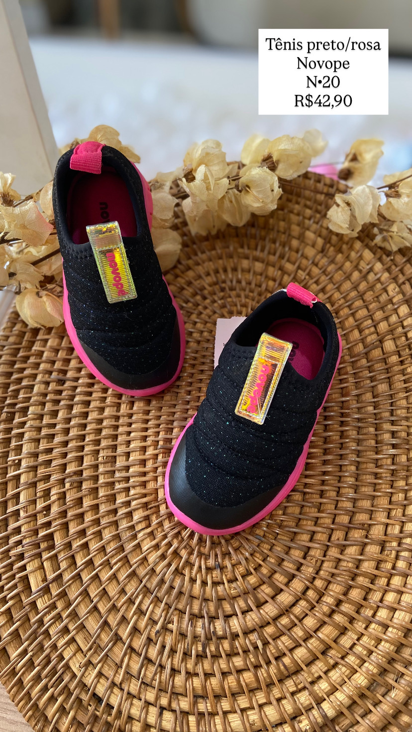 Tênis Novope preto e rosa Tamanho 20