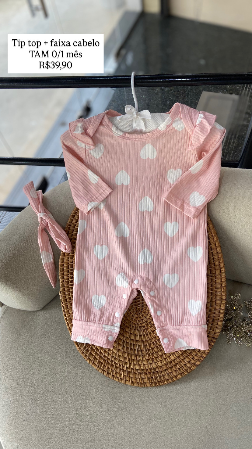 Tip Top + Faixa de Cabelo Rosa Corações Tamanho 0/1 mês