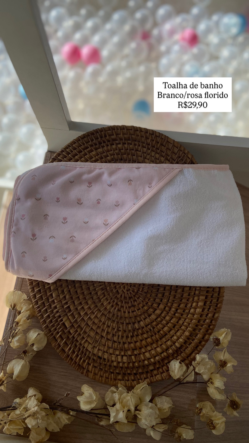 Toalha de Banho Florido branco/rosa