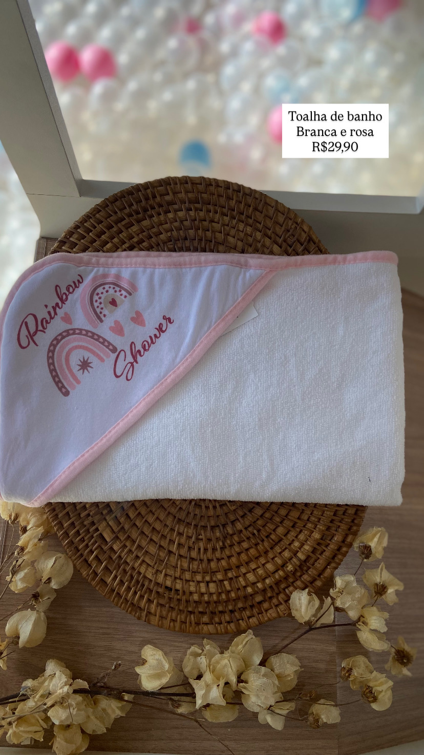 Toalha de Banho Rainbow Shower Branca/Rosa