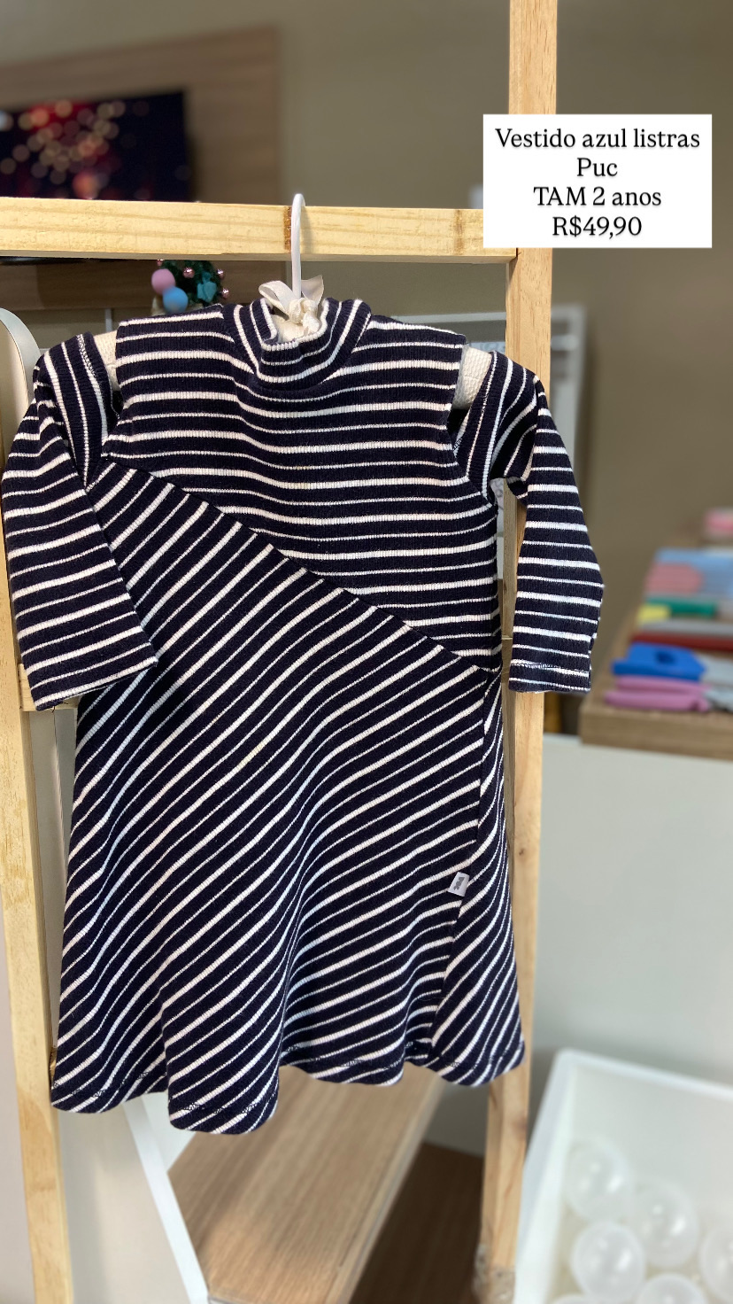 Vestido Azul Listras Puc Tamanho 2