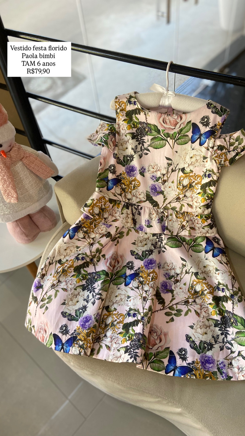 Vestido Festa Florido Paola Bimbi Tamanho 6