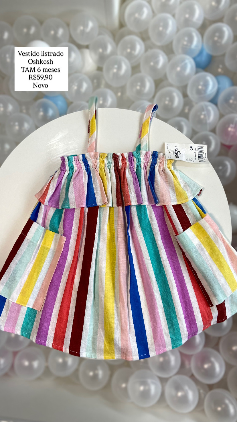 Vestido Listrado Oshkosh Tamanho 6 meses Novo