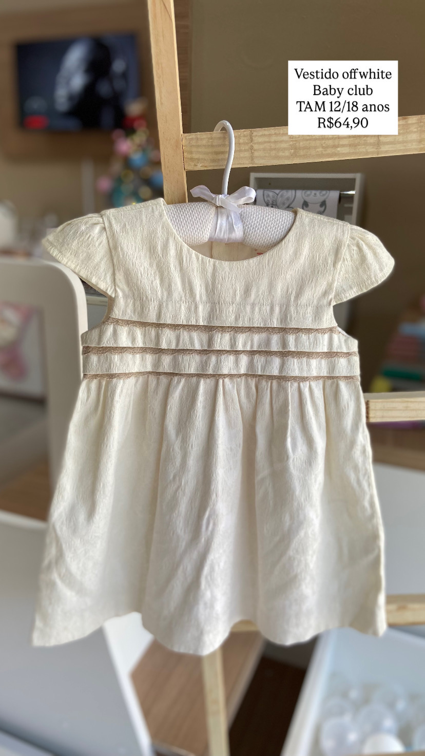 Vestido Offwhite Baby Club Tamanho 12/18 meses