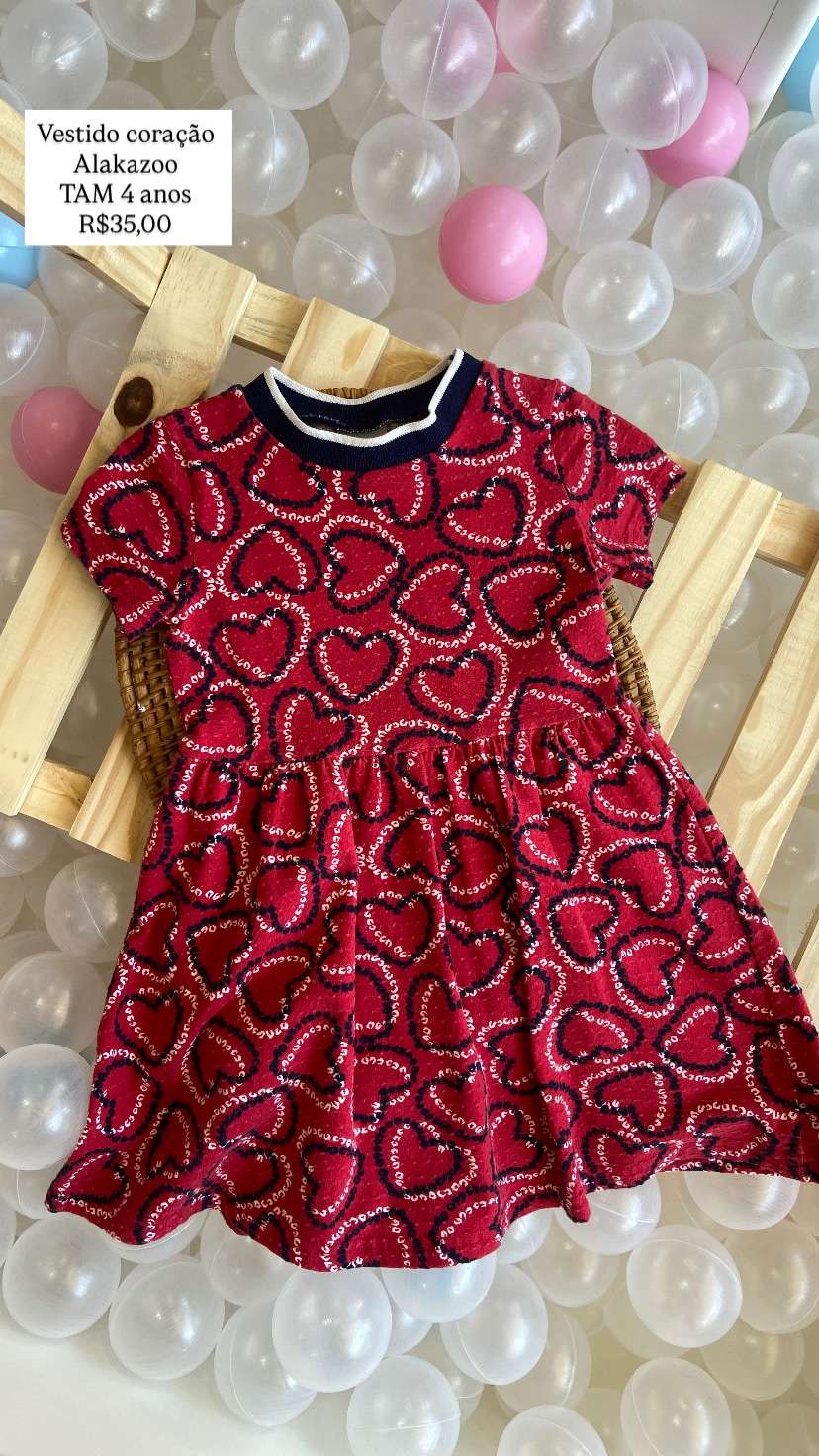 Vestido Vermelho Corações Alakazoo Tamanho 4
